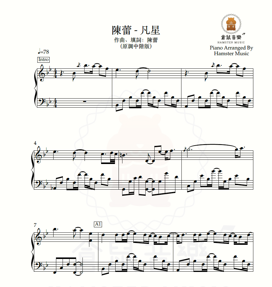 [可訂造琴譜]陳蕾 - 凡星(原調中階版)