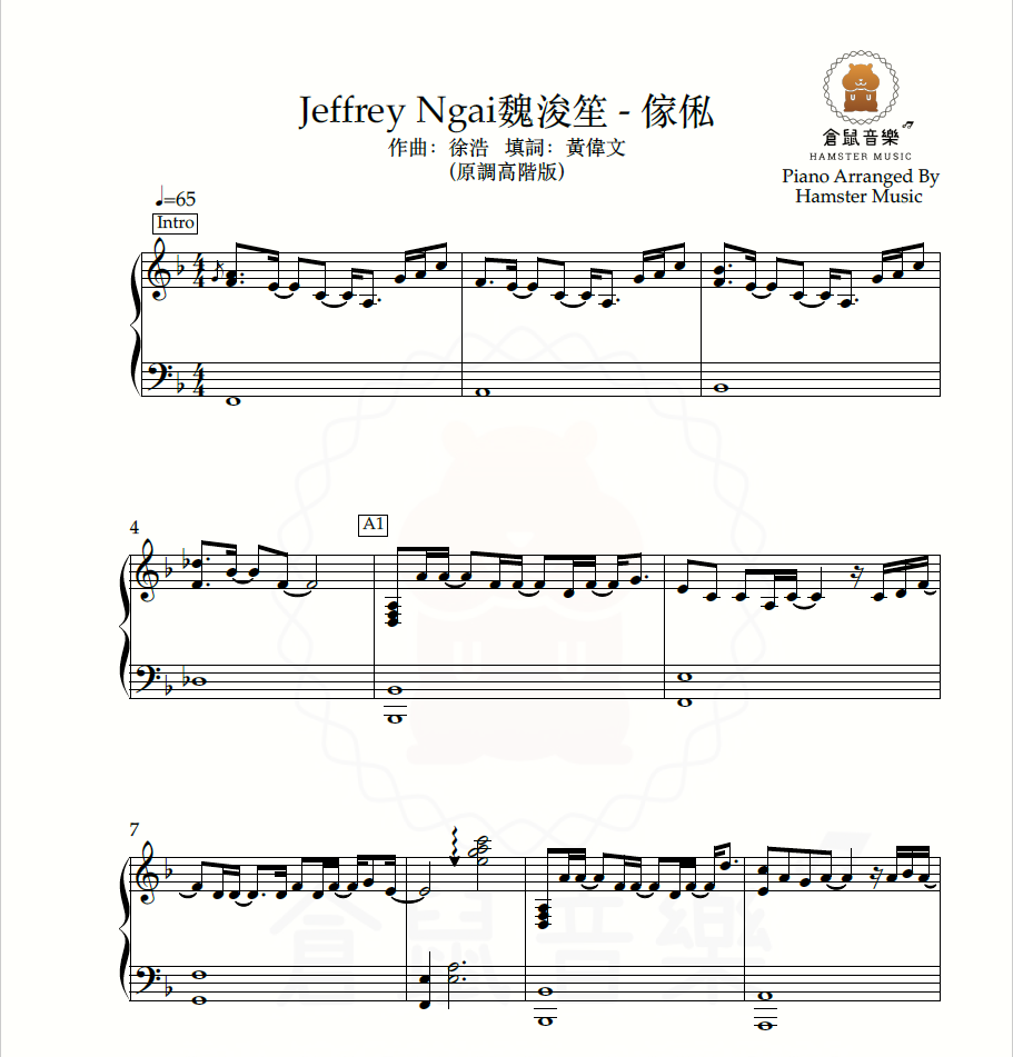 [可訂造琴譜]Jeffrey Ngai魏浚笙 - 傢俬(原調高階版)