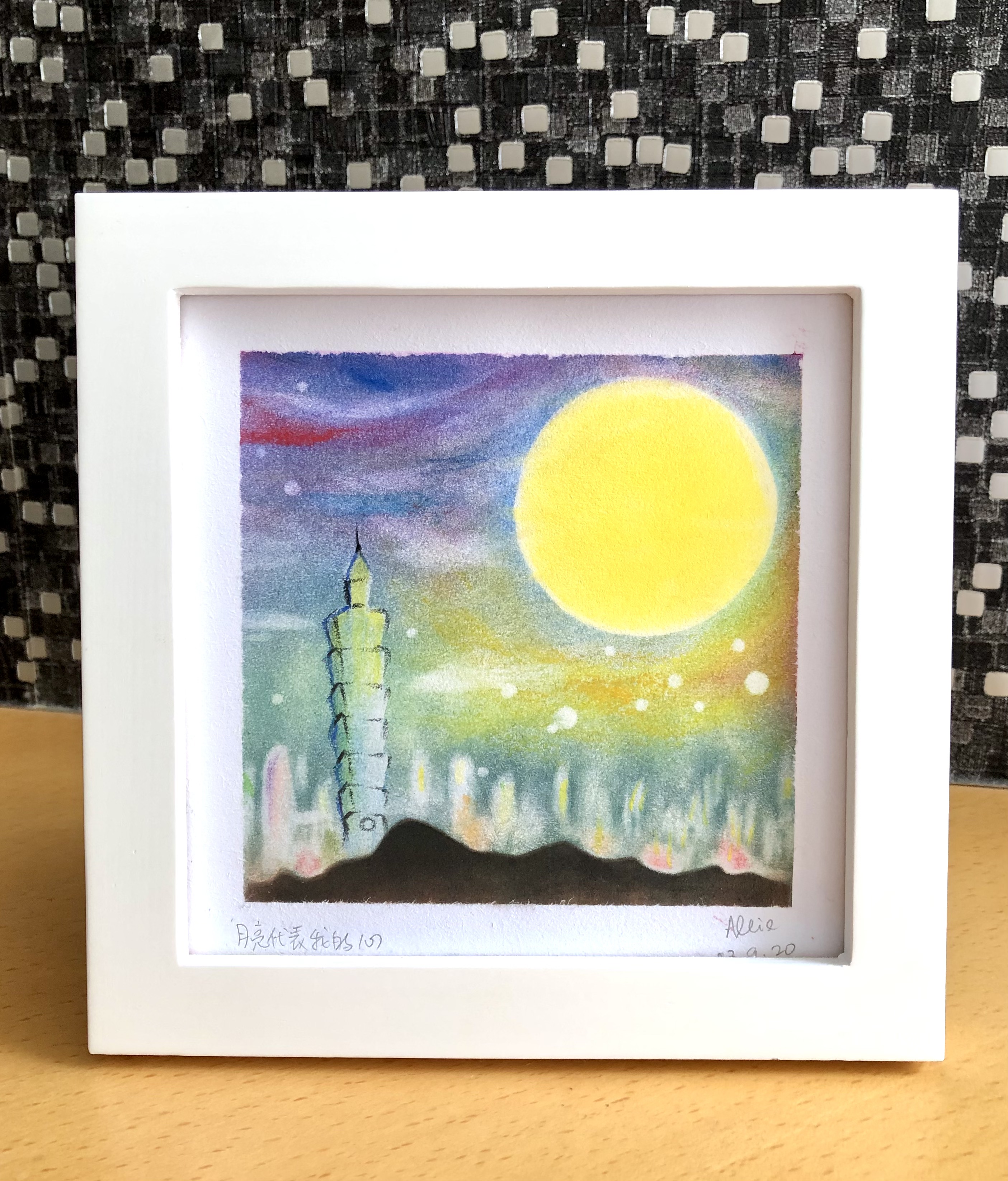 作品尺寸小巧 (正方形 15 公分;含框 18 公分),適合放在客廳/睡房/工作間,隨時欣賞,讓心情瞬間放鬆。