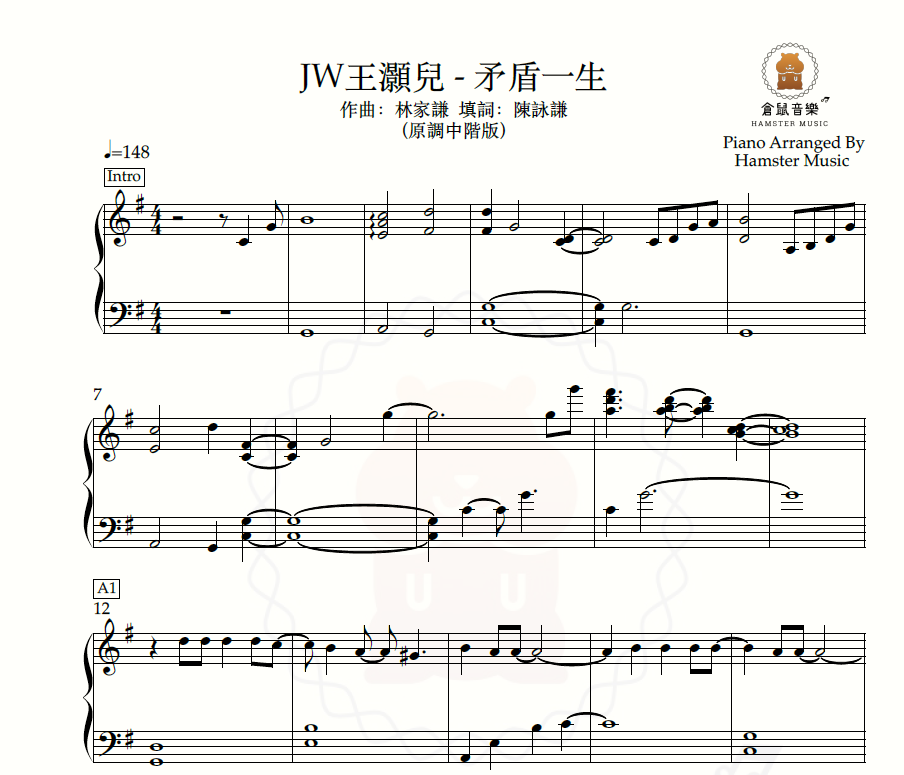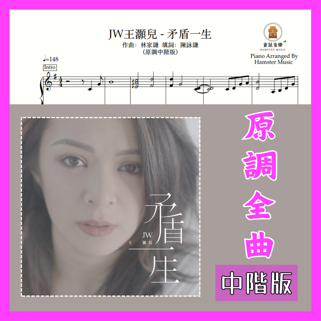 [可訂造琴譜]JW王灝兒 - 矛盾一生(原調中階版)
