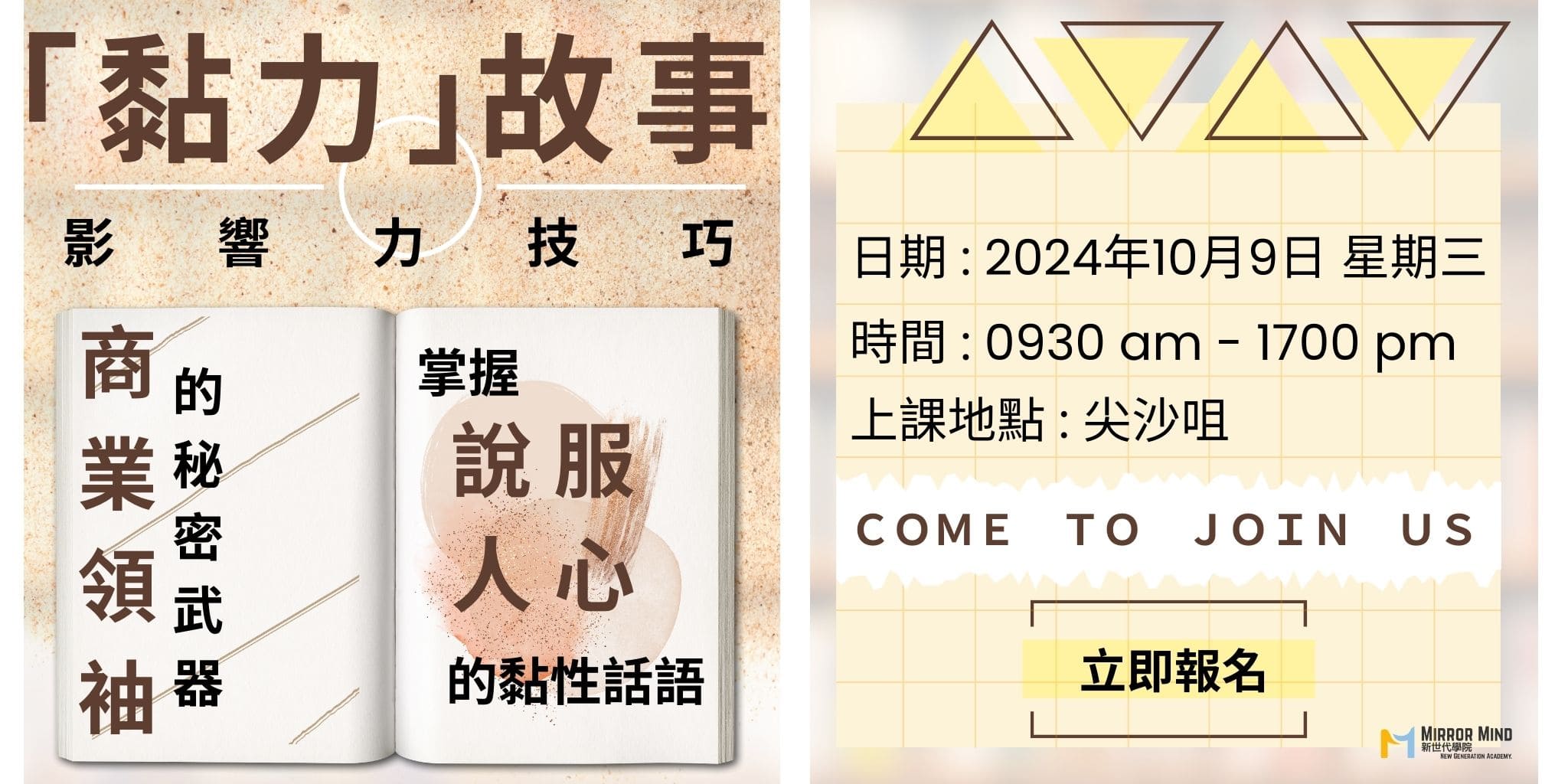 課程將會教你掌握說服力的六大金原則,帶你一步步學會講故事的秘訣。無論你是希望在職場上增強說服力,還是提升個人影響力,我們都會深入淺出地教你如何講出動人的故事,讓你的表達更有魅力和效果。
