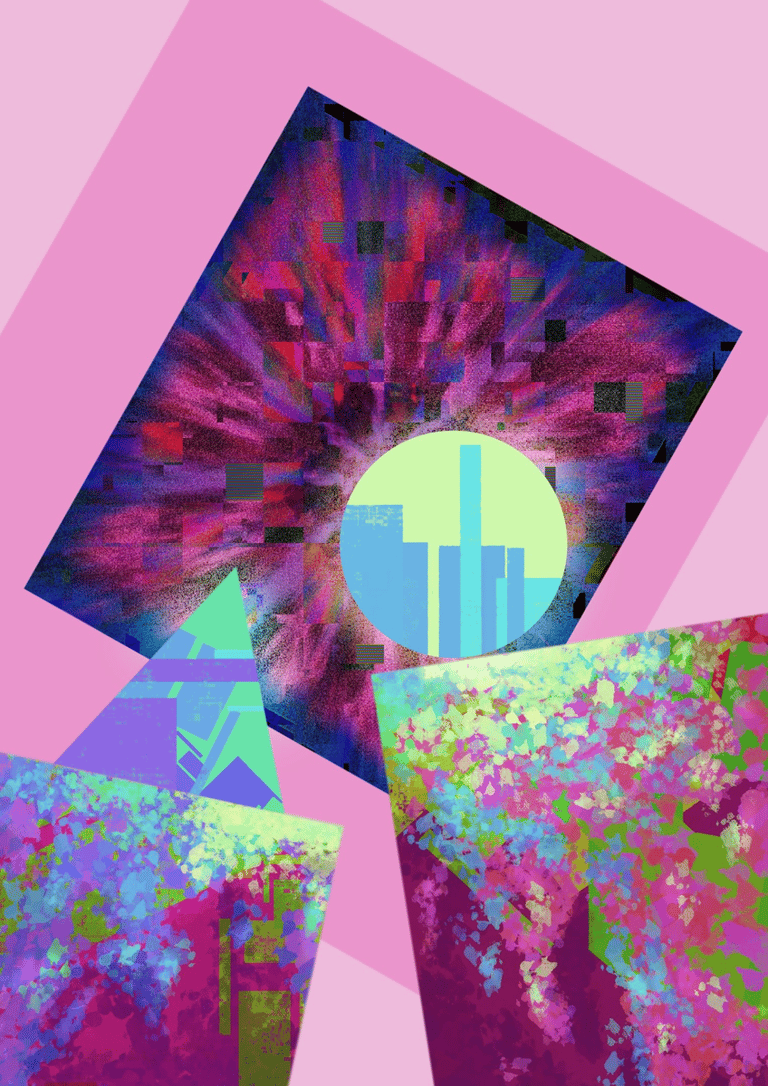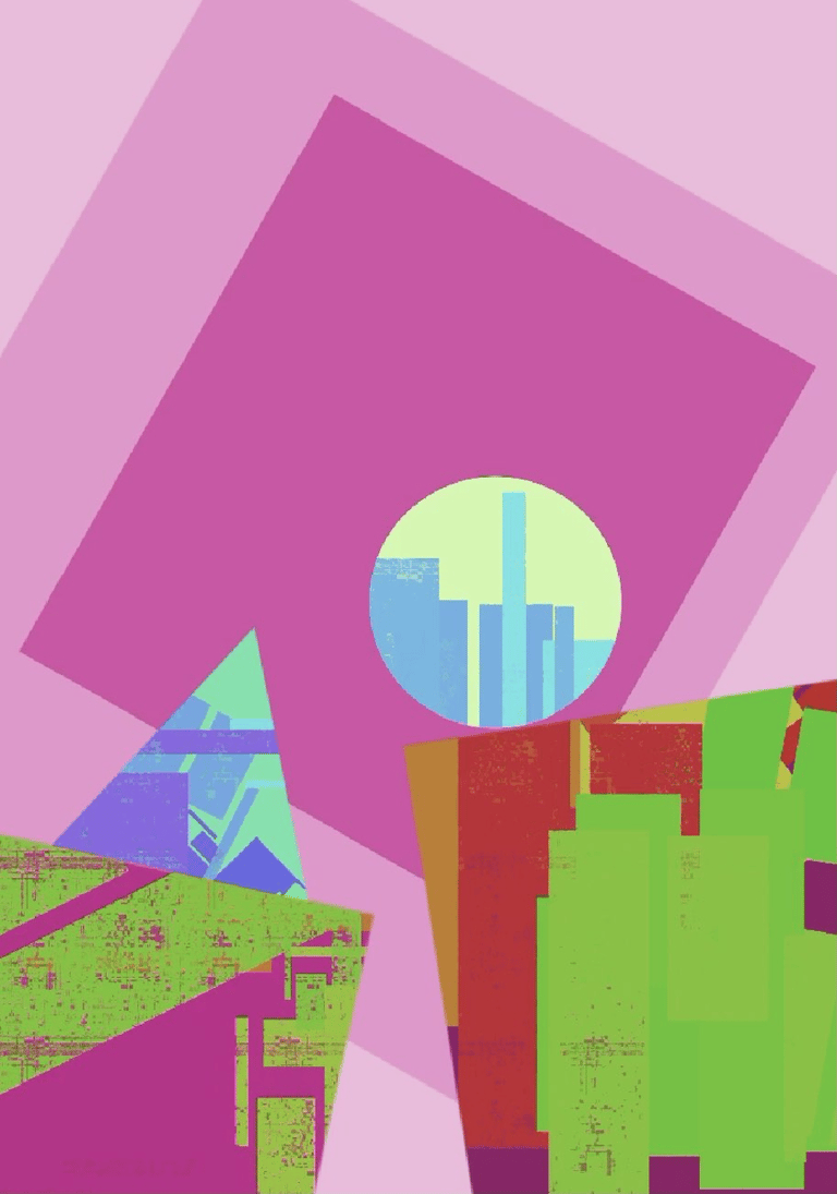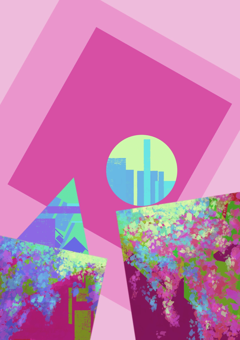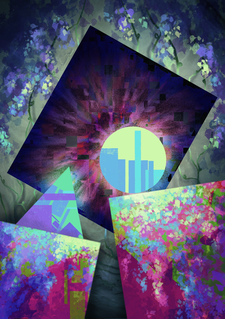 Descending order of the drawing progress, it originally only have green and pinks before a few strokes of random thoughts.