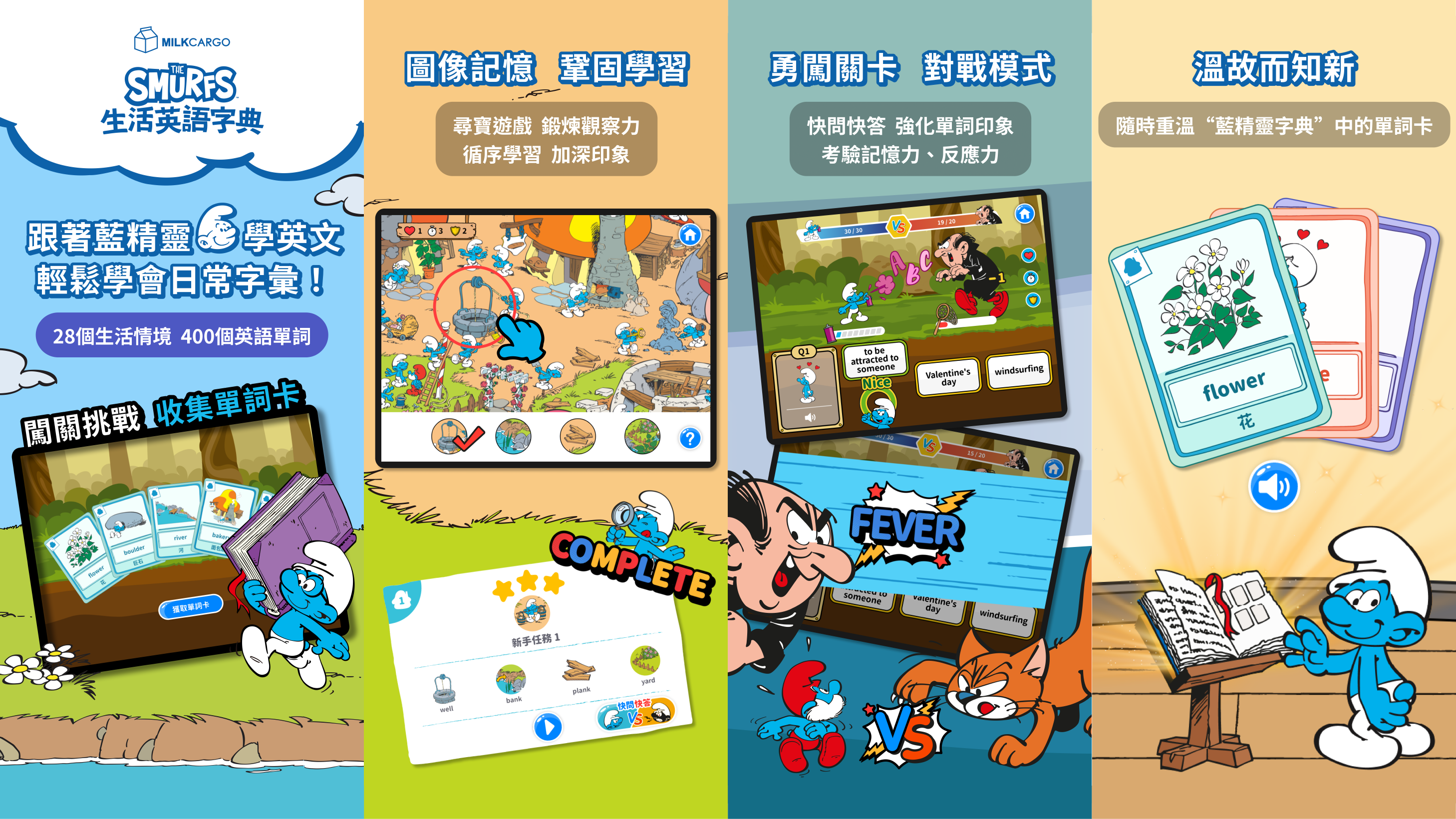 運用 IP ,例如藍精靈、HeyDuggee等,設計一套學習遊戲APP,本人設計工作主要是 UI design 及圖像處理。