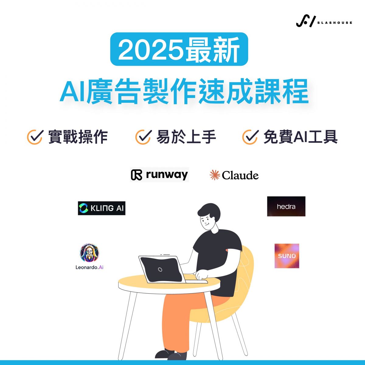 《AI廣告製作速成課程》約40分鐘,將為您介紹6款實用的AI工具,幫助您快速提升內容創作效率。