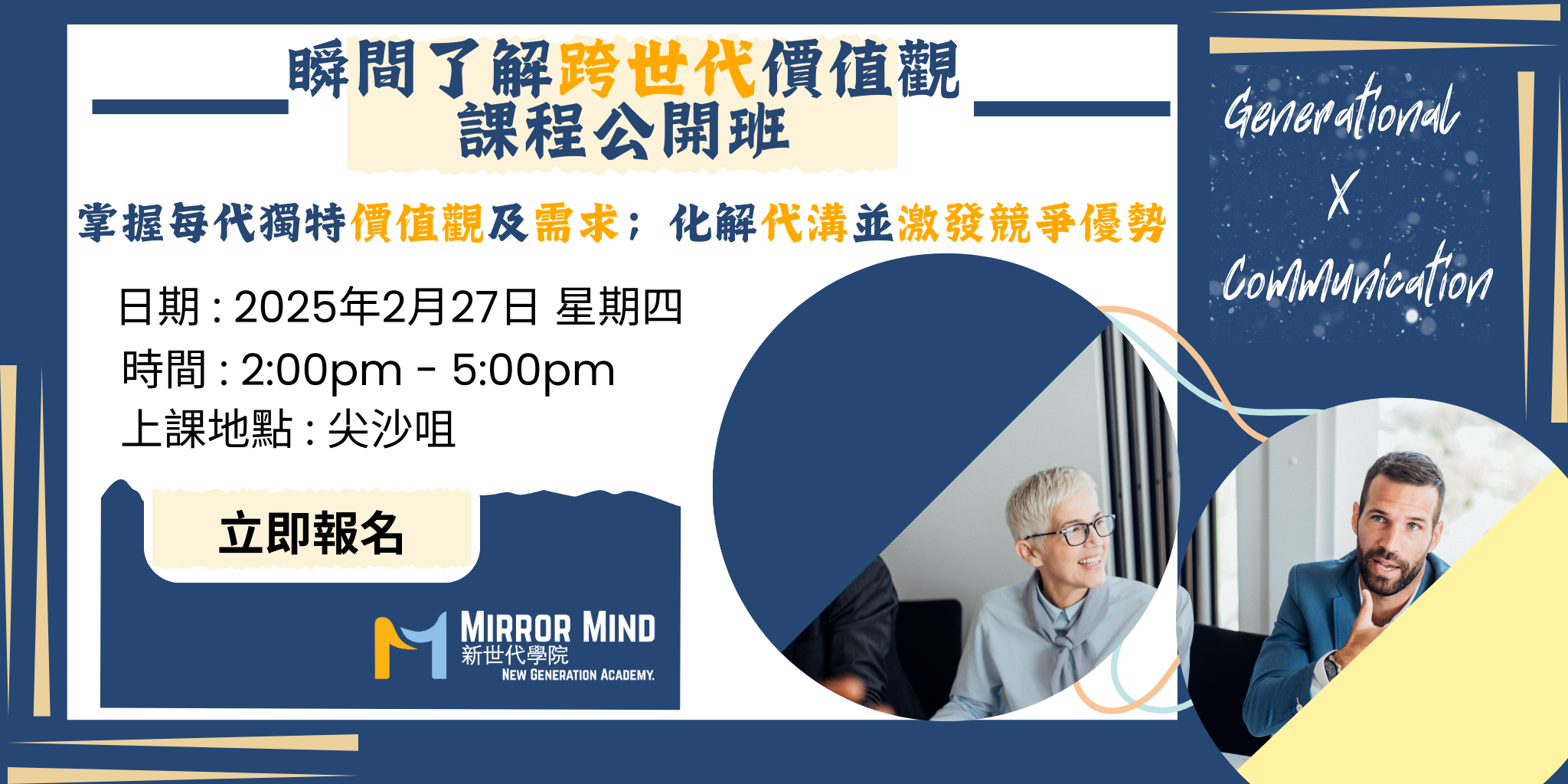 新世代/跨世代溝通系列 MGC-02 瞬間了解跨世代價值觀課程公開班