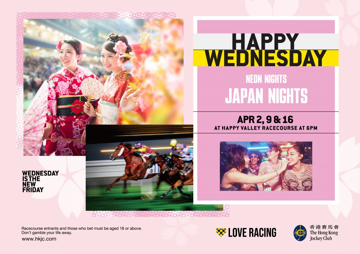 [香港,2025年3月28日] — 週中派對「日本之夜」(Japan Nights) 即將再度登陸跑馬地馬場!4月2日、9日及16日,與我們一同投入日本文化與娛樂的魅力之中!Happy Wednesday 的「霓虹之夜」(Neon Nights) 將為您呈現充滿活力的精彩表演、日本美食,以及刺激的現場賽馬,其中包括4月2日的日本中央競馬會錦標。