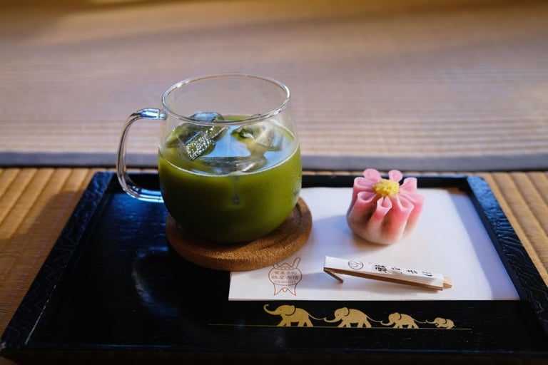 漫步於其迷人的內部,悠閒地漫步於精緻的日式花園,這座建築瑰寶將傳統的日本設計與西方風格融為一體,營造出視覺饗宴,從主屋出發,坐在榻榻米座位上,透過復古的玻璃窗欣賞花園寧靜的氛圍。若想體驗優雅的氛圍,您可以在主屋內尋找一個舒適的角落,享用茶和甜點。選擇鶴屋吉信 (Tsuruya Yoshinobu) 的美味佳餚,或品嚐京都老店的抹茶蛋糕和濃鬱的茶凍。對於想要品嚐一杯天堂般的茶的人來說,一保堂茶店的抹茶飲品套裝是必嘗之選。 🍵