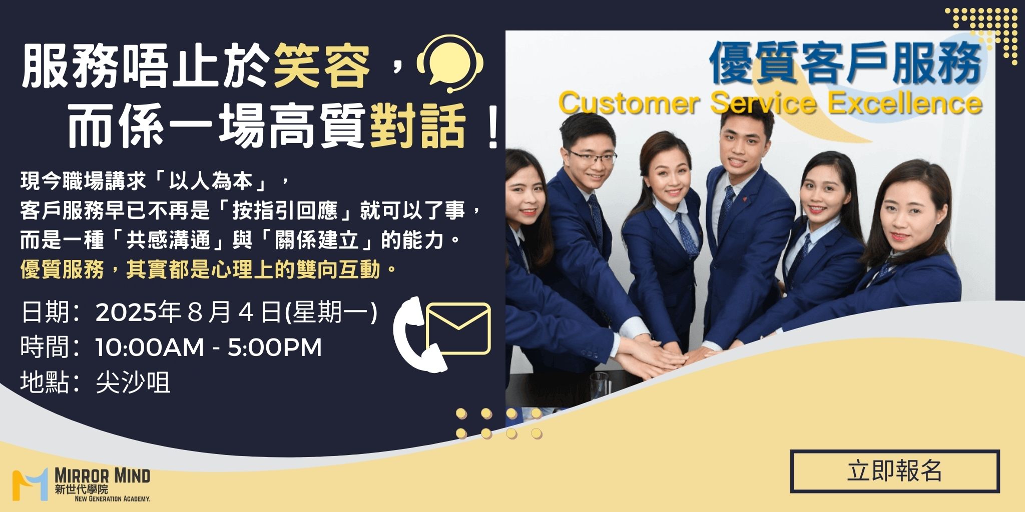 並學識應用心理技巧,由服務人員到外部顧客都可從良好印象到建立長遠關係!歡迎機構合辦課程 / 合作!