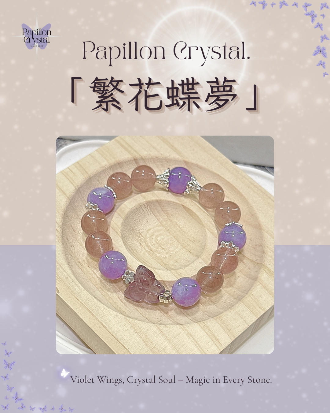 🔮店主原創水晶手鏈 by 𝑃𝑎𝑝𝑖𝑙𝑙𝑜𝑛 𝐶𝑟𝑦𝑠𝑡𝑎𝑙.🔮「石藏奇光,蝶境啟秘」🌷繁花蝶夢🌷𝐻𝐾𝐷 $208**首次惠顧客人全部貨品可享9折優惠🔮草莓晶✧功效:增強魅力、促進愛情和諧✧對應脈輪:心輪✧五行屬性:火🔮紫水晶✧功效:提升智慧、加強記憶力、幫助思考✧對應脈輪:頂✧五行屬性:火🦋