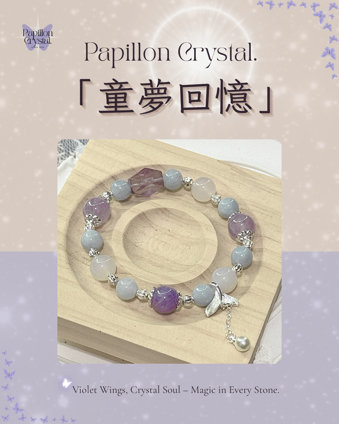 🔮店主原創水晶手鏈 by 𝑃𝑎𝑝𝑖𝑙𝑙𝑜𝑛 𝐶𝑟𝑦𝑠𝑡𝑎𝑙.🔮「石藏奇光,蝶境啟秘」👧🏻童夢回憶🍬𝐻𝐾𝐷 $218**首次惠顧客人全部貨品可享9折優惠🔮紫水晶✧功效:提升智慧、加強記憶力、幫助思考✧對應脈輪:頂✧五行屬性:火🔮海藍寶✧功效:增強溝通能力及說服力、改善呼吸道健康✧對應脈輪:喉輪✧五行屬性:水🔮白瑪瑙✧功效:幫助建立自信✧對應脈輪:頂輸、靈魂之星✧五行屬性:金🦋